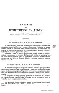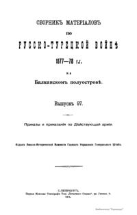 Сборникъ матерiаловъ по русско-турецкой войнѣ 1877-1878 г.г. на Балканскомъ полуостровѣ. Выпускъ 97. Приказы и приказанiя по Дѣйствующей армiи