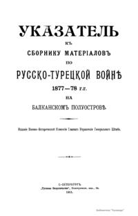Указатель к сборнику материалов по русско-турецкой войне 1877-1878 гг. на Балканском полуострове