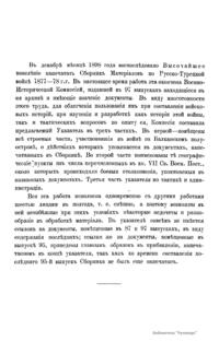 Военно-историческая комиссия Генерального штаба представляет сборник материалов по русско-турецкой войне 1877 – 1878 гг. на Балканском полуострове в 97 выпусках. Издание формирует полное представление о военных действиях и участниках этой войны. Русско-турецкая война 1877 – 1878 гг. была вызвана нежеланием Турции принять меры к улучшению положения подвластных ей христианских княжеств, обусловленному парижским трактатом 1856 г, и стремлением России укрепить свое влияние на Балканах. Способствовала освобождению народов Балканского полуострова от османского владычества. Россия объявила войну Турции 12 апреля 1877 г. Основные события: 1877 – сражение на Шипке, осада и взятие русскими войсками Плевны и Карса; 1878 – зимний переход русской армии через Балканский хребет, победы у Шипки – Шейново, Филиппополя, взятие Адрианополя. Завершилась Сан-Стефанским миром 1878 г., который обеспечил независимость балканским народам и территориальные приобретения России. Но Берлинский трактат ограничил независимость Болгарии и влияние России на Балканах.