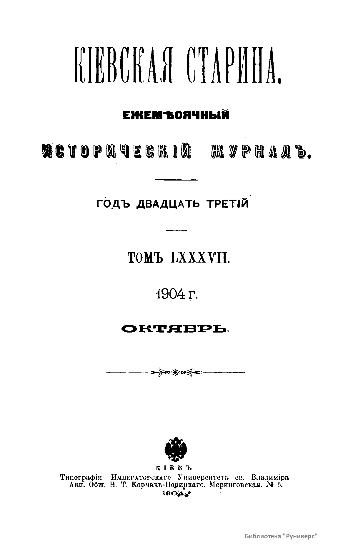 Киевская старина. Год двадцать третий. Том LXXXVII. Октябрь-Декабрь 1904 г.