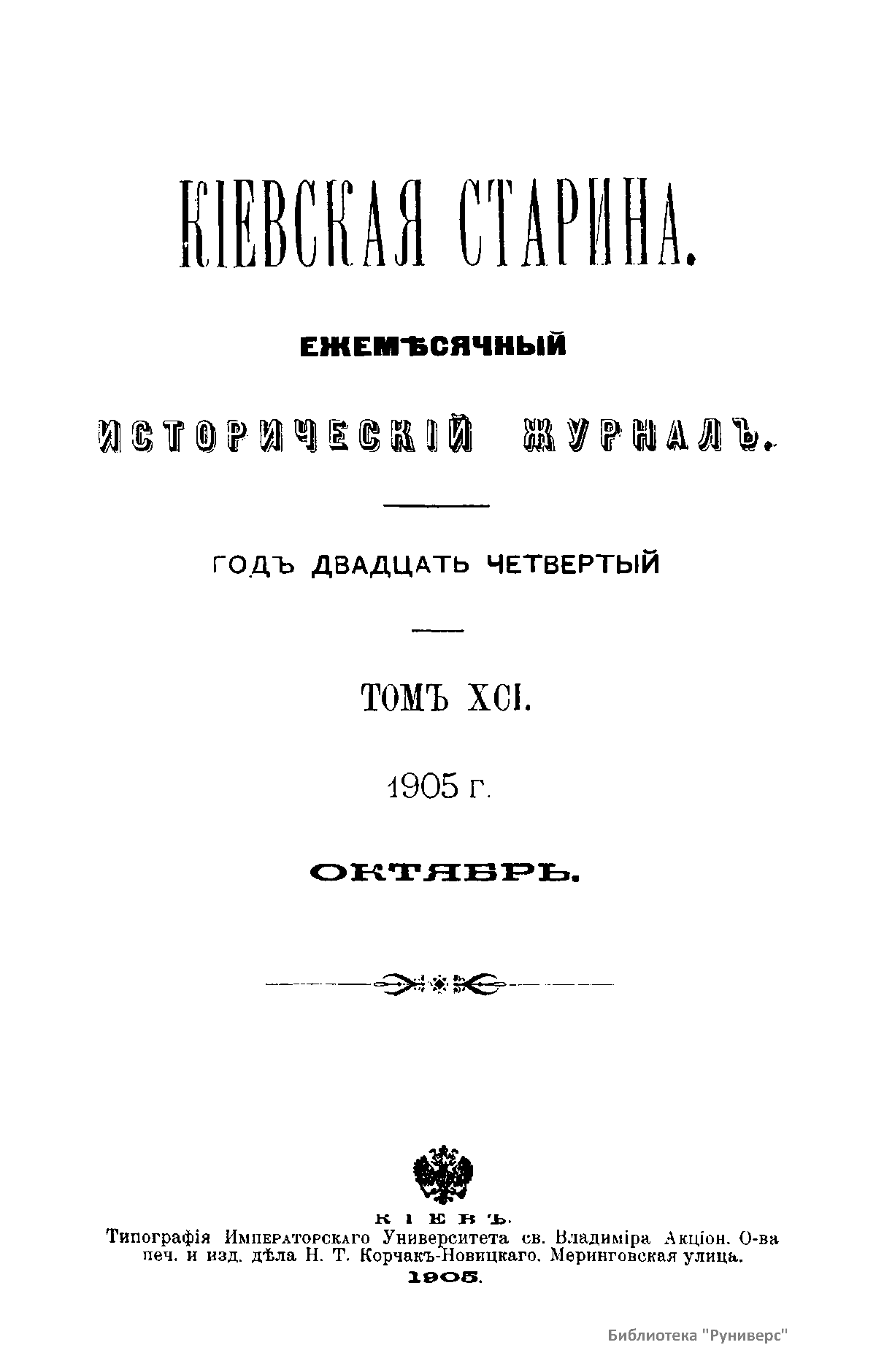 Киевская старина. Год двадцать четвертый. Том XCI. Октябрь-Декабрь 1905 г.