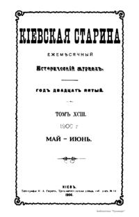 Киевская старина. Год двадцать пятый. Том XCIII. Май-Август 1906 г.