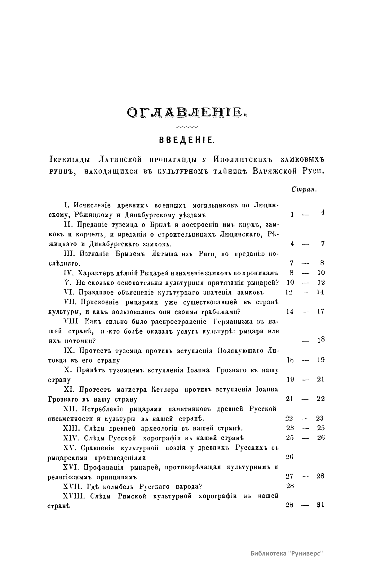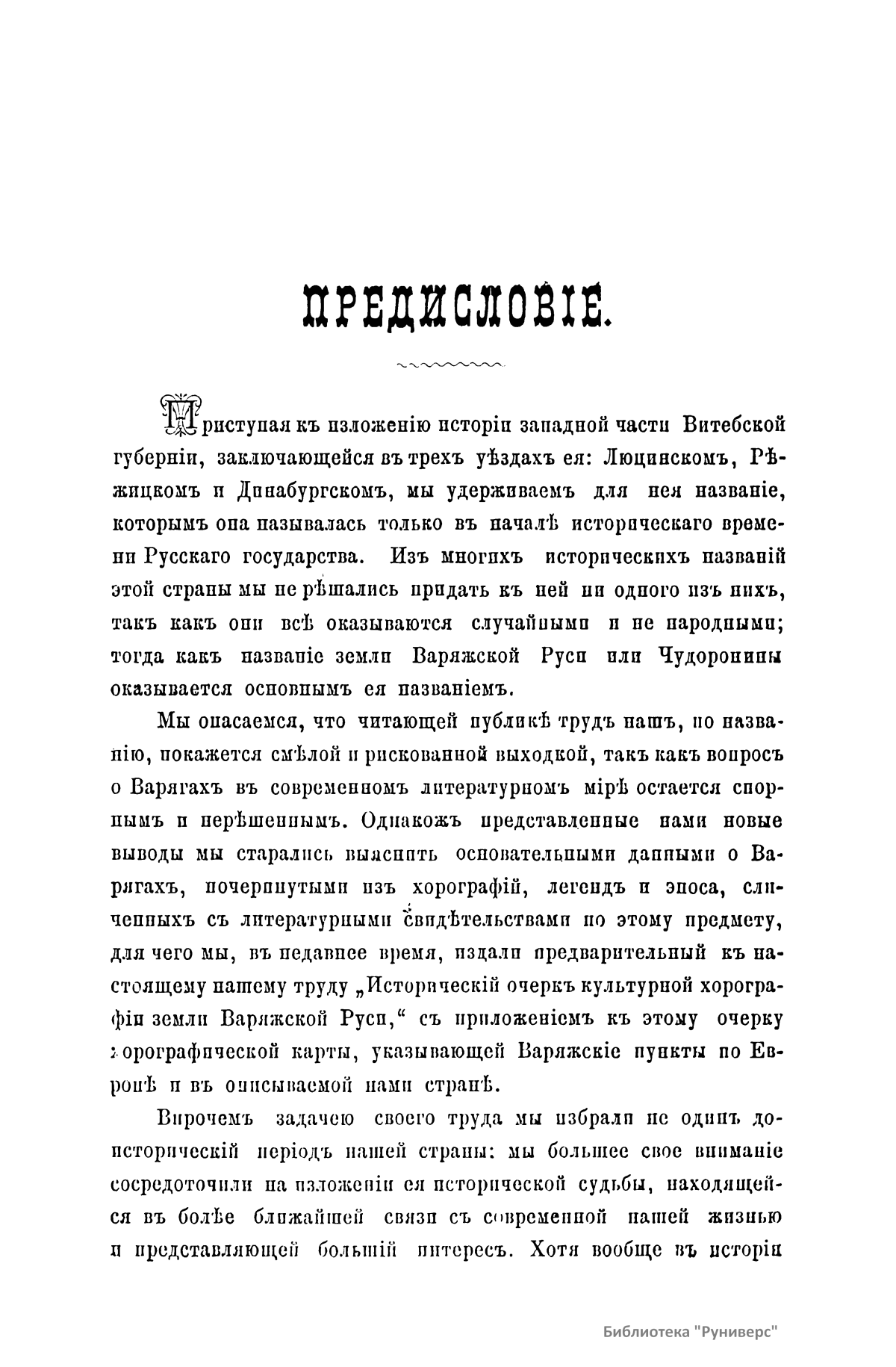 Варяжская Русь – западная часть Витебской губернии, заключающаяся в трех уездах: Люцинском, Режицком и Динабургском. Автор книги ставит перед собой задачу изложить историческую судьбу этого уголка земли, так как он испокон веков находился в ближайшей связи с русской землей и в его пределах разрешались самые важные вопросы русской истории. Он приводит доказательства фиктивности религиозных и культурных притязаний латинской пропаганды, руководившей вторгавшимися в эту часть русской земли народами.