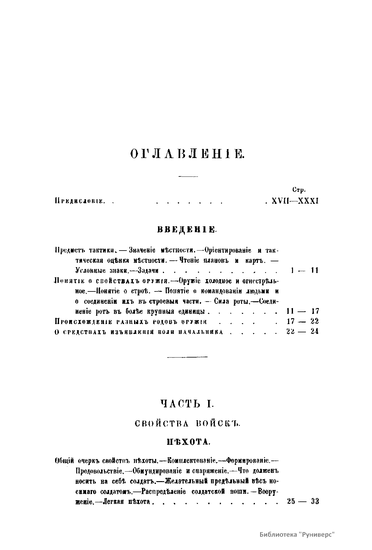 Тактика – составная часть военного искусства, включающая теорию и практику подготовки и ведения боя соединениями, частями (кораблями) и подразделениями различных видов вооруженных сил, родов войск (сил флота) и специальных войск на суше, в воздухе и на море. Тактика занимает подчиненное положение по отношению к оперативному искусству и стратегии. В предлагаемом учебнике автор свел воедино все сведения, которые было необходимо знать строевому офицеру по тактике на 1879 год.