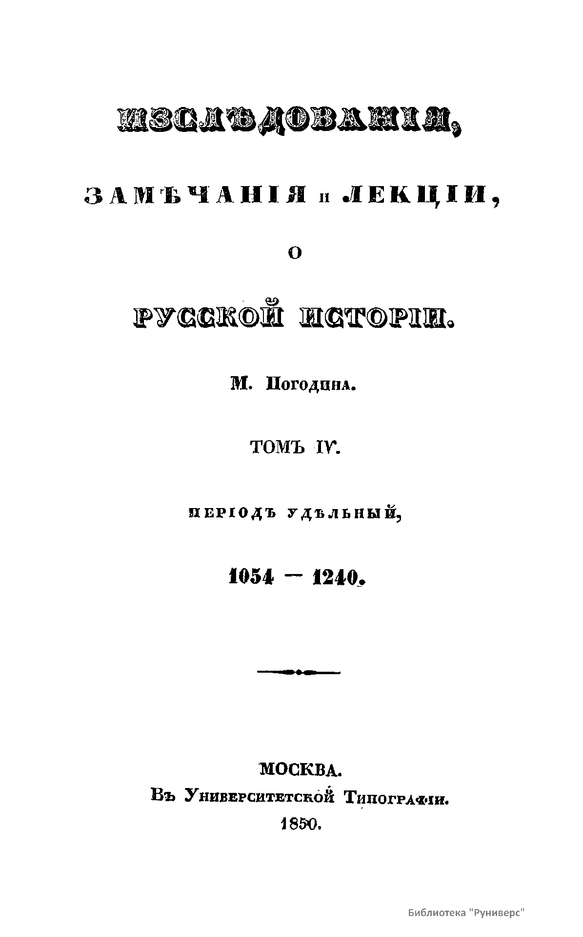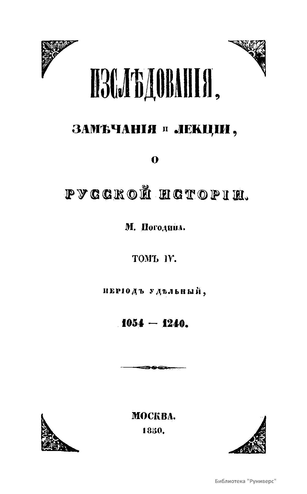 Изслѣдованiя, замѣчанiя и лекцiи о русской исторiи. Томъ IV. Перiод удѣльный, 1054-1240