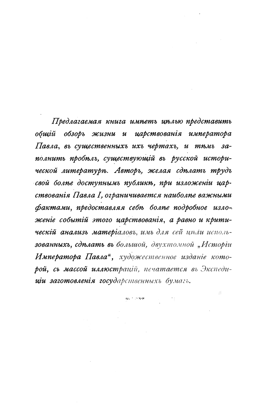 «У нас нет даже краткого, фактического обозрения Павловского периода русской истории: анекдот в этом случае оттеснил историю» - пишет историк в предисловии.