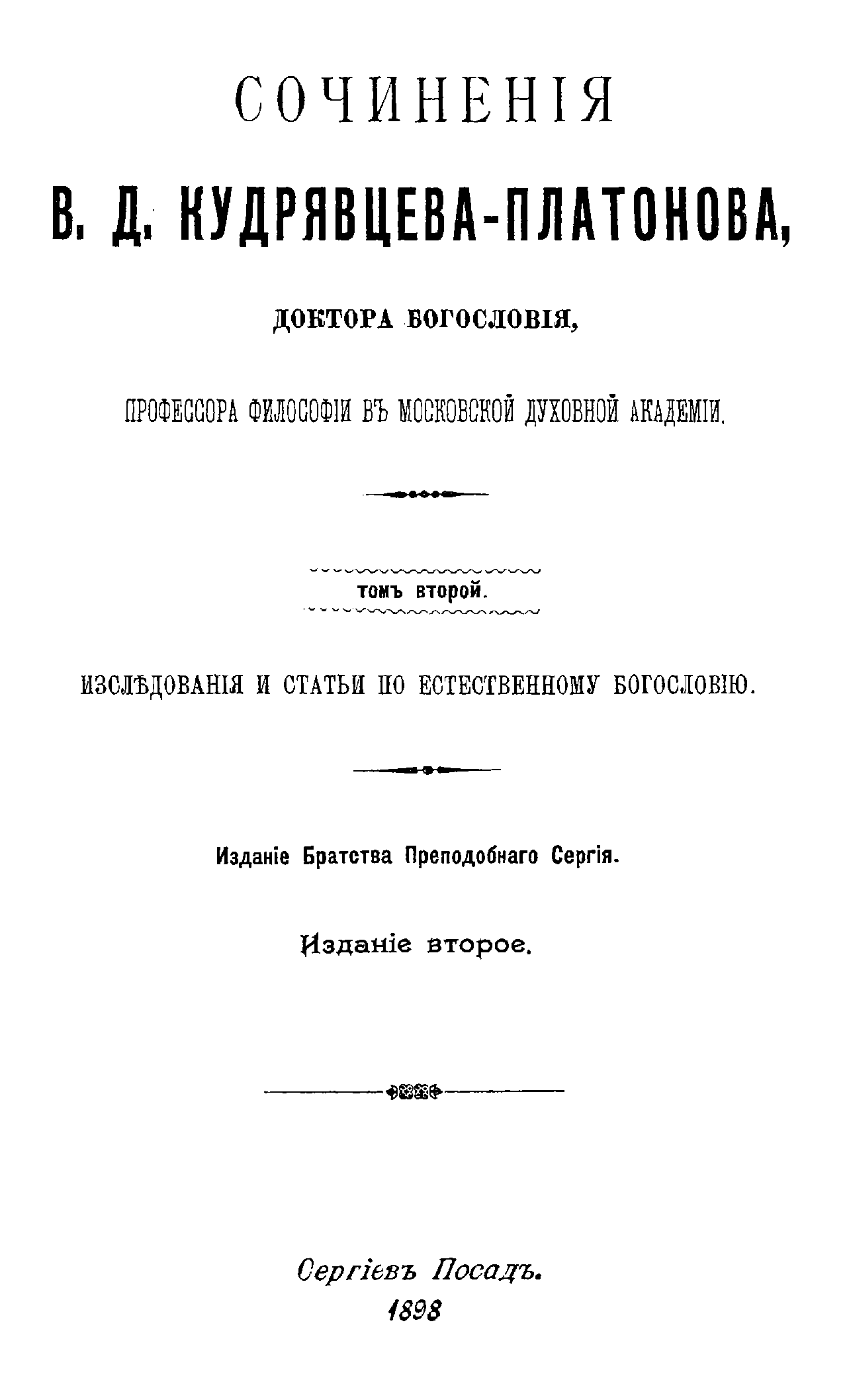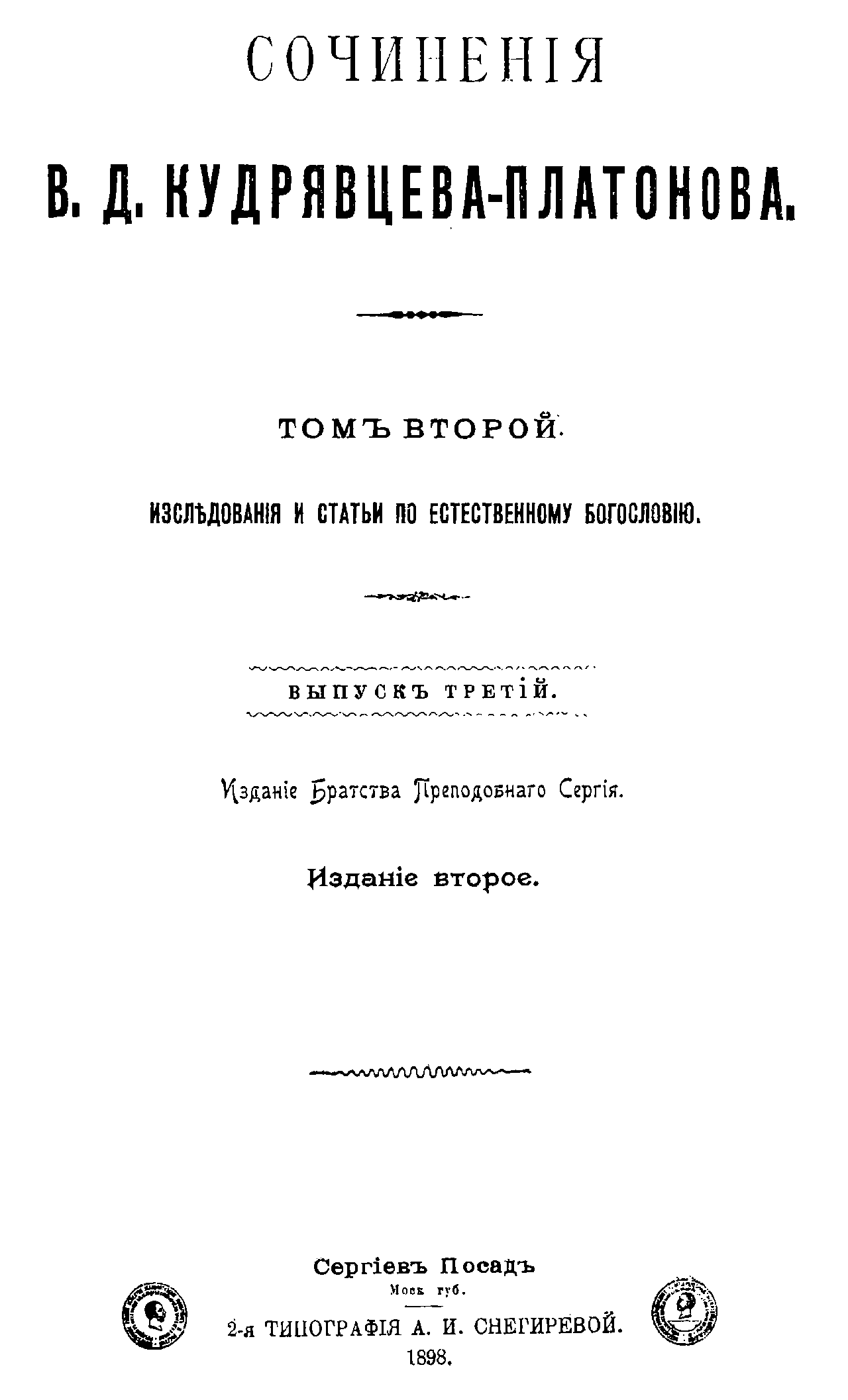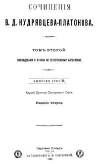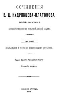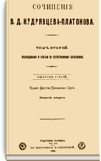 Посмертное издание собрания сочинений видного представителя русского теизма – профессора Московской Духовной академии и Председателя Братства Преподобного Сергия. Несмотря на то, что в истории русской философии Кудрявцев-Платонов не получил известности как основатель оригинальной философской системы, его по праву считают превосходным философским писателем и талантливым выразителем идеи непротиворечивого сочетания философского миросозерцания и христианского учения.