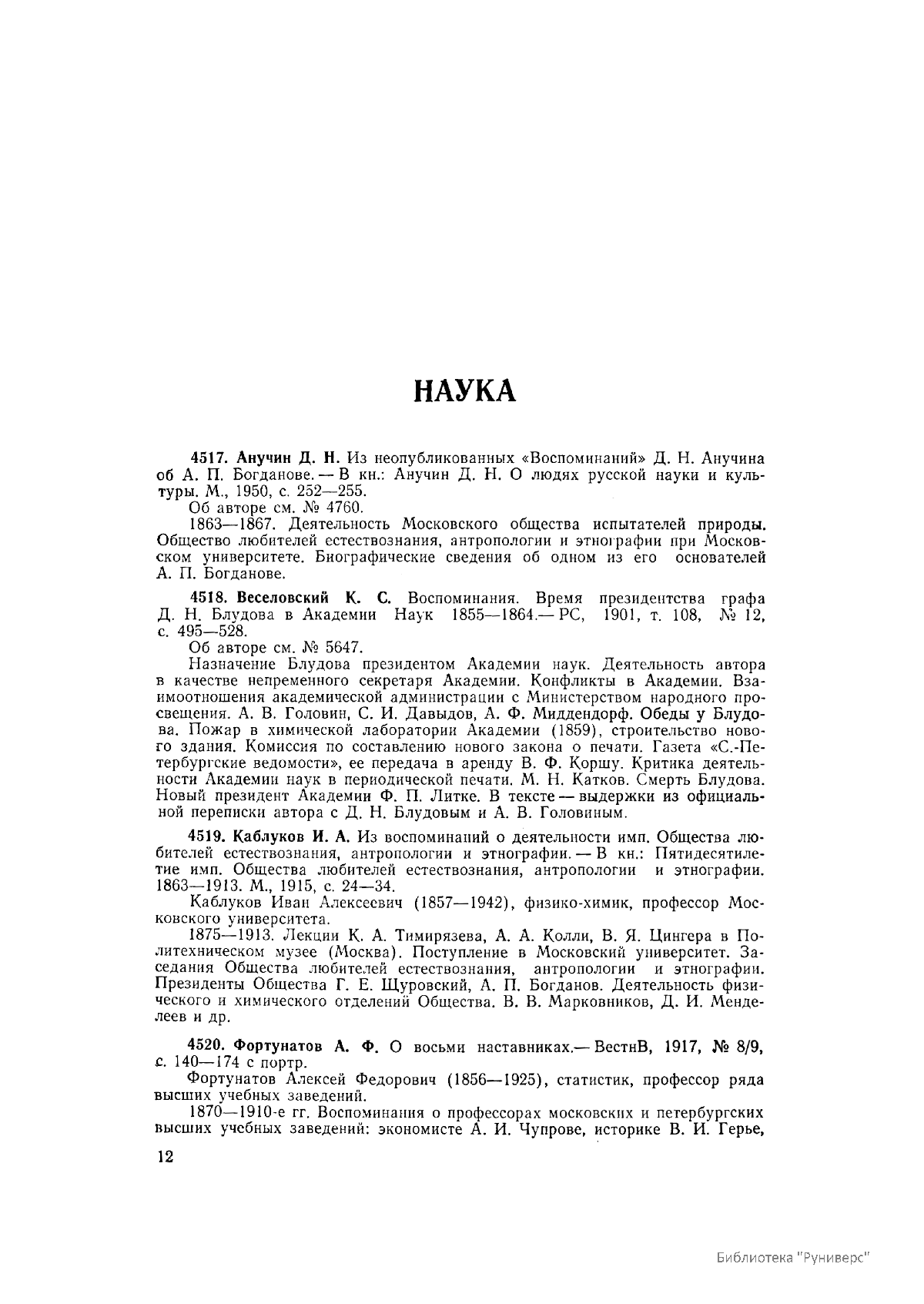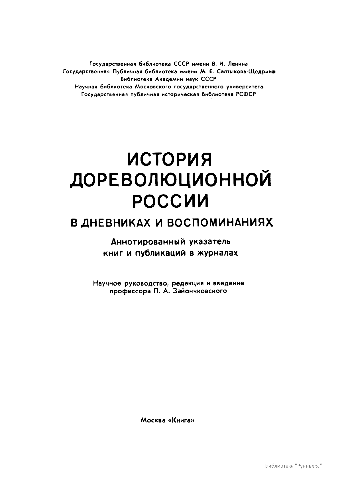Многотомное издание этого уникального библиографического исследования, ставшего итогом многолетней работы большого коллектива ведущих отечественных источниковедов и библиографов главных библиотек нашей страны, представляет собой крупнейшее собрание аннотированной мемуарной литературы по истории России. Ведущую роль в создании этого фундаментального издания сыграл крупный отечественный ученый-историк П.А. Зайончковский, под редакцией и неусыпным контролем которого разрабатывался и выходил представленный многотомник (последние 5 книг вышли после кончины этого замечательного учёного-энциклопедиста).
