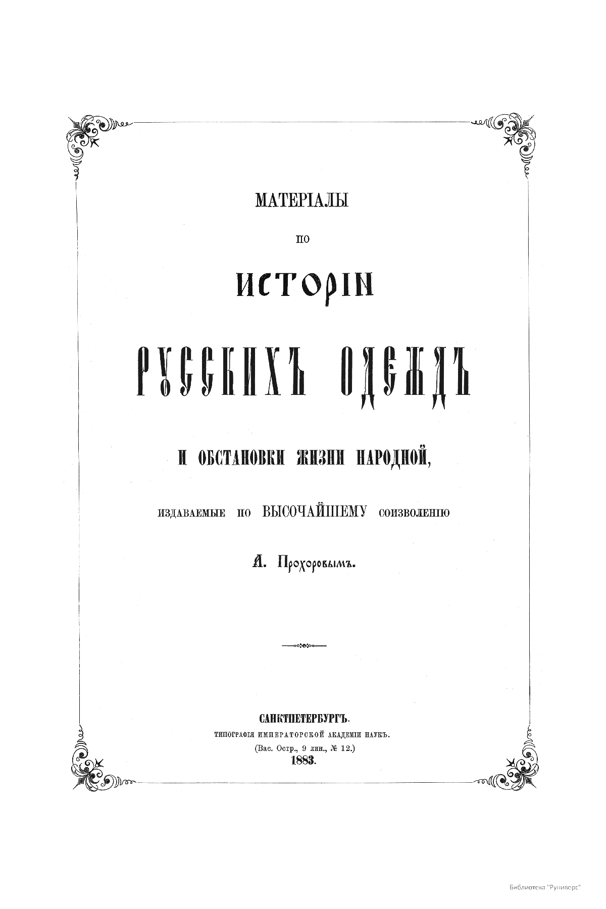Материалы по истории русских одежд и обстановки жизни народной. Том II