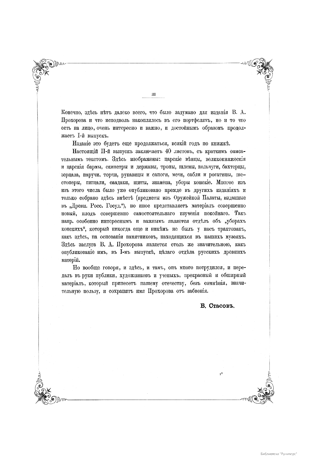 Третий том содержит отделы, посвящённые древнерусской мебели, царской утвари и одежде, мужским головным уборам.