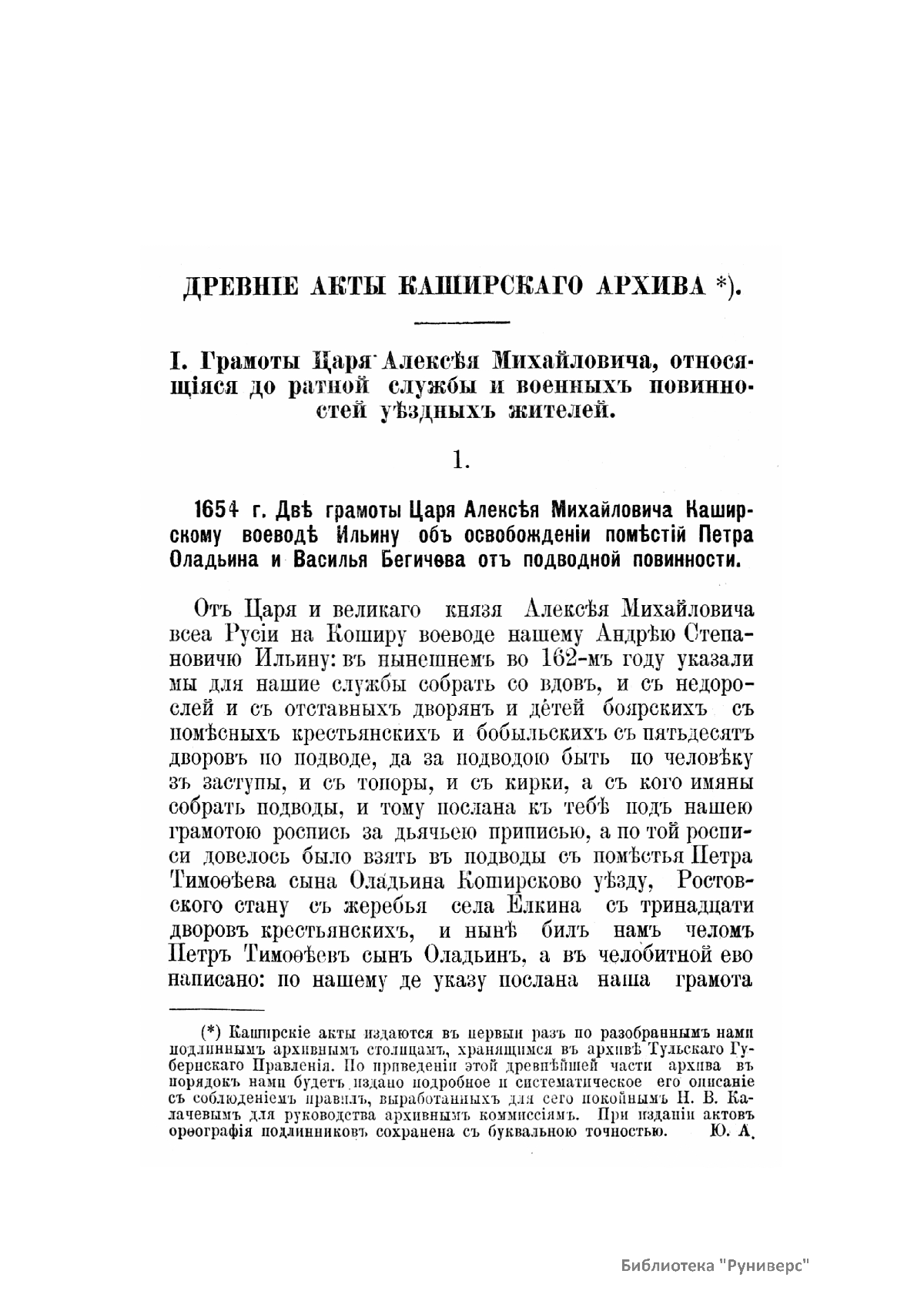 "Тульская старина". Сборникъ древнихъ актовъ по исторiи Тульскаго края въ XVII вѣкѣ