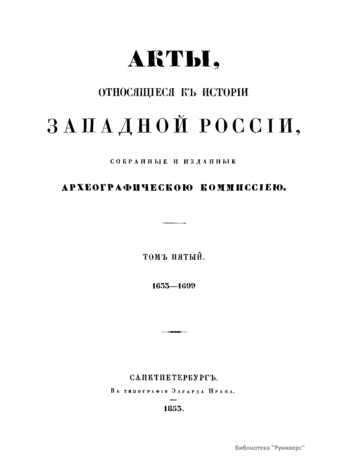 Акты, относящiеся къ исторiи Западной Россiи. Томъ пятый. 1633-1699