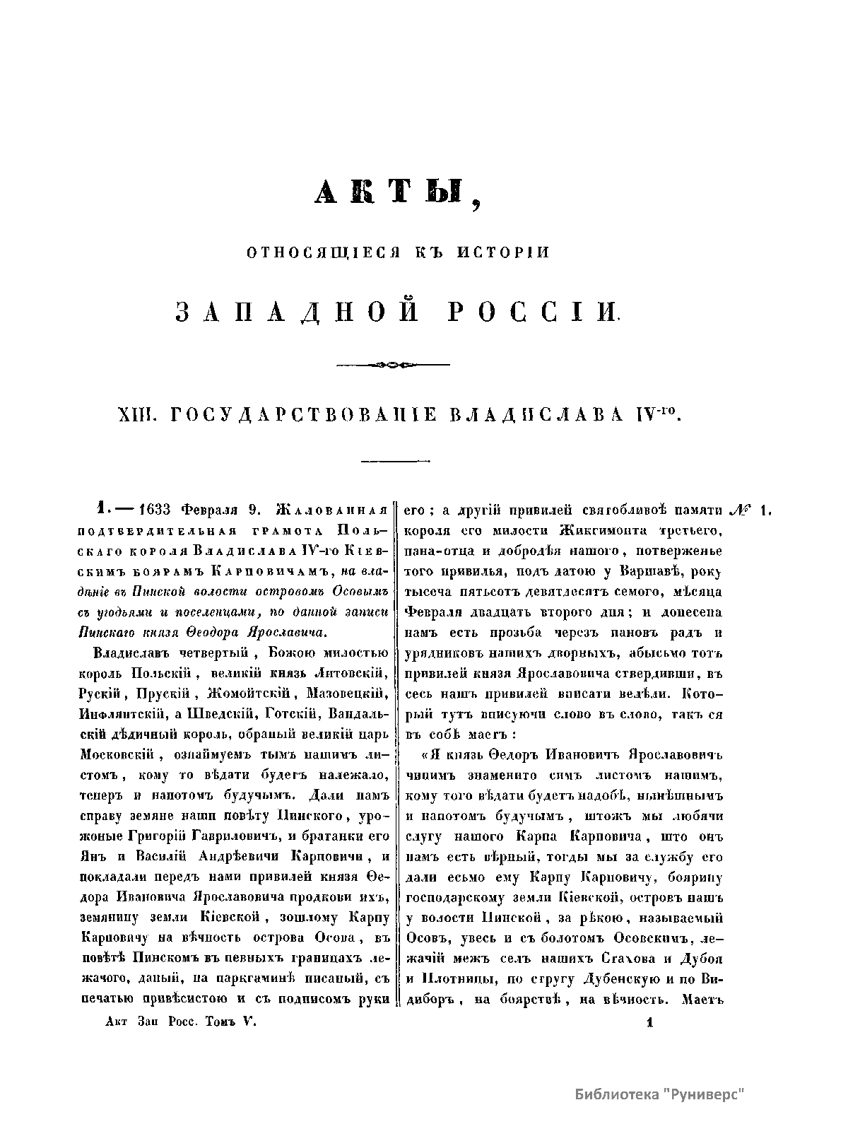 Акты, относящиеся к истории Западной России. Том пятый. 1633-1699