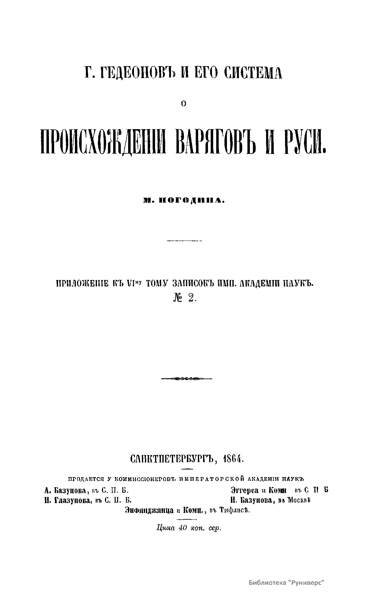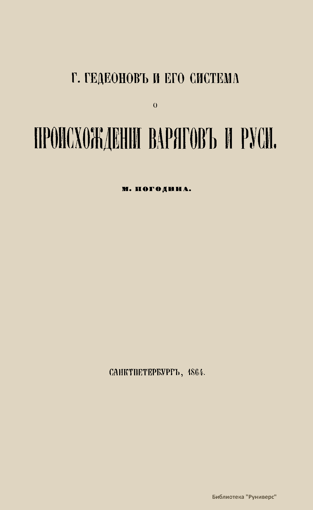 Г. Гедеоновъ и его система о происхожденiи варяговъ и Руси