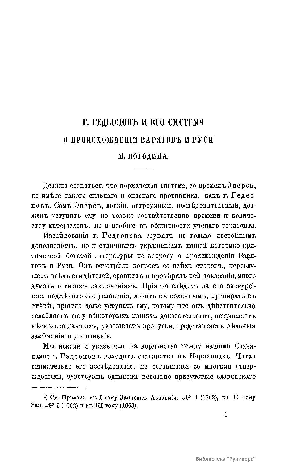 Г. Гедеонов и его система о происхождении варягов и Руси