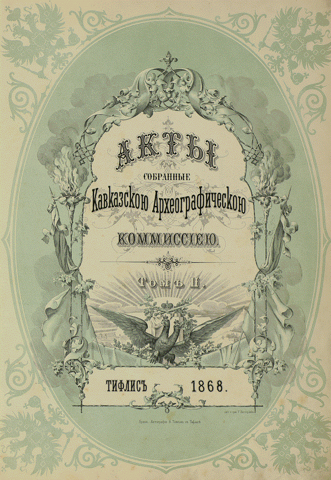 Документы по истории Кавказа с X века по 1862 год издавались по инициативе русских властей под редакцией председателя Кавказской археографической комиссии Адольфа Петровича Берже (1828 – 1886). В двенадцати томах издания опубликованы разнообразные сведения по истории народов Кавказа: арабская хроника, фирманы, гуджары (жалованные грамоты) и другие акты, главным образом XIV — первой половины XIX века на грузинском, армянском, русском, арабском, персидском, татарском, турецком языках с русским переводом, а также родословные местных ханов и султанов. Каждый том включает документы за время правления того или иного кавказского наместника.