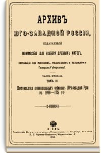 В серии «Архив Юго-Западной России» были напечатаны документы Киевского архива. Издание было предпринято Киевской археографической комиссией с 1859 по 1911 год. Всего вышло 34 тома.