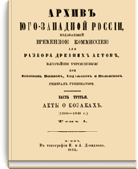 В серии «Архив Юго-Западной России» были напечатаны документы Киевского архива. Издание было предпринято Киевской археографической комиссией с 1859 по 1911 год. Всего вышло 34 тома.