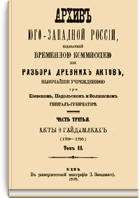 В серии «Архив Юго-Западной России» были напечатаны документы Киевского архива. Издание было предпринято Киевской археографической комиссией с 1859 по 1911 год. Всего вышло 34 тома.