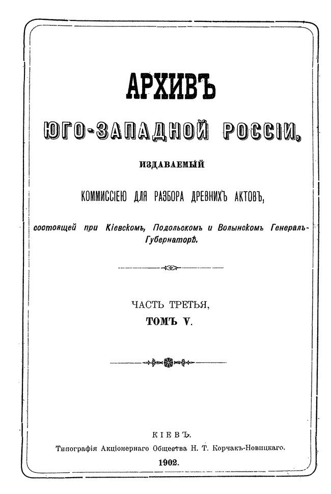 Архив Юго-Западной России. Часть 3. Том V.