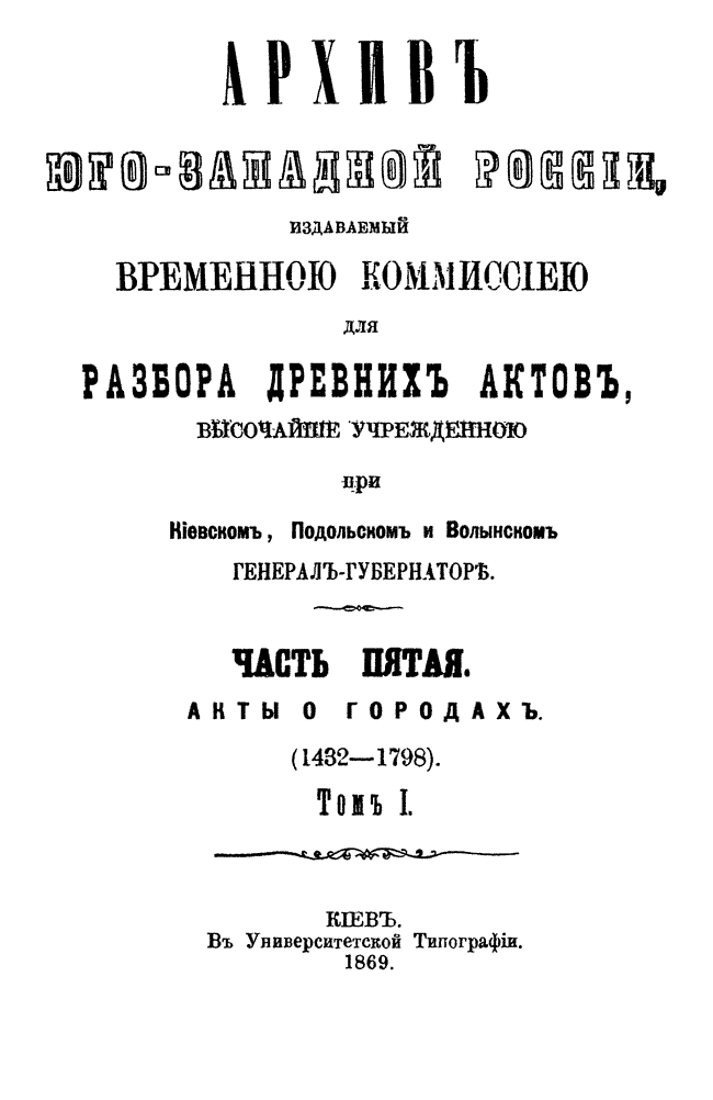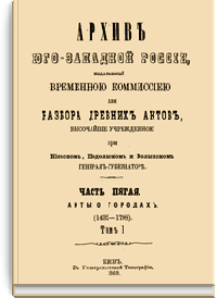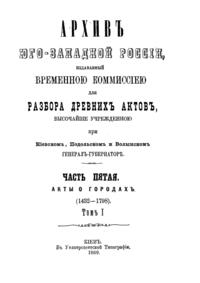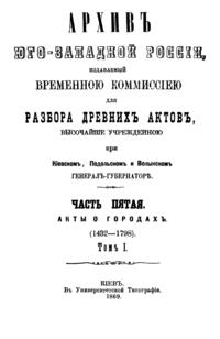 В серии «Архив Юго-Западной России» были напечатаны документы Киевского архива. Издание было предпринято Киевской археографической комиссией с 1859 по 1911 год. Всего вышло 34 тома.