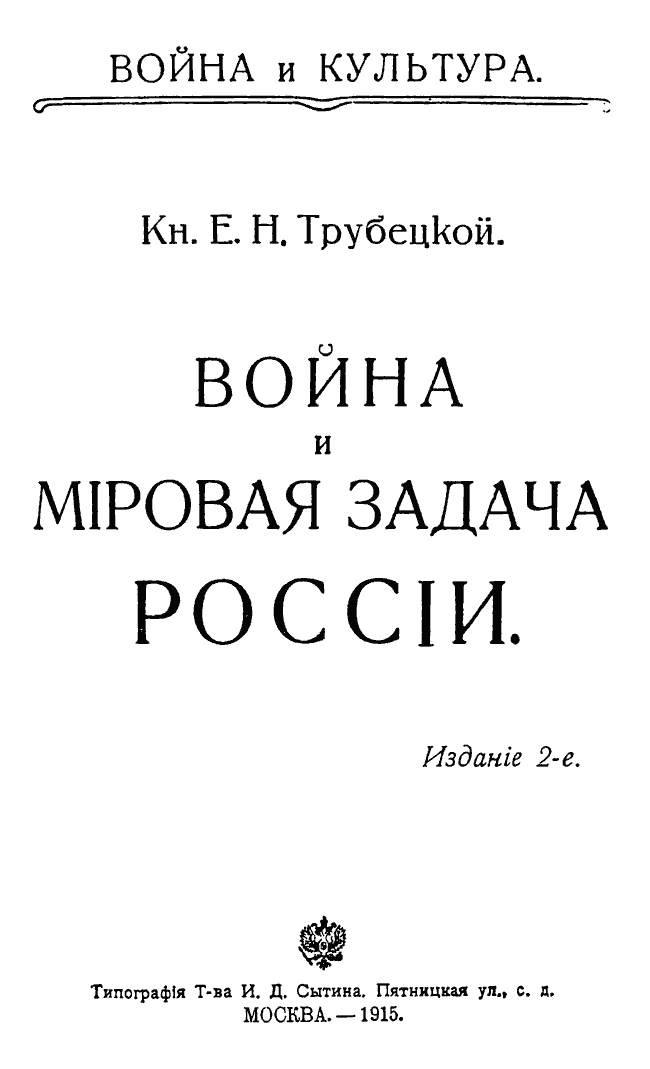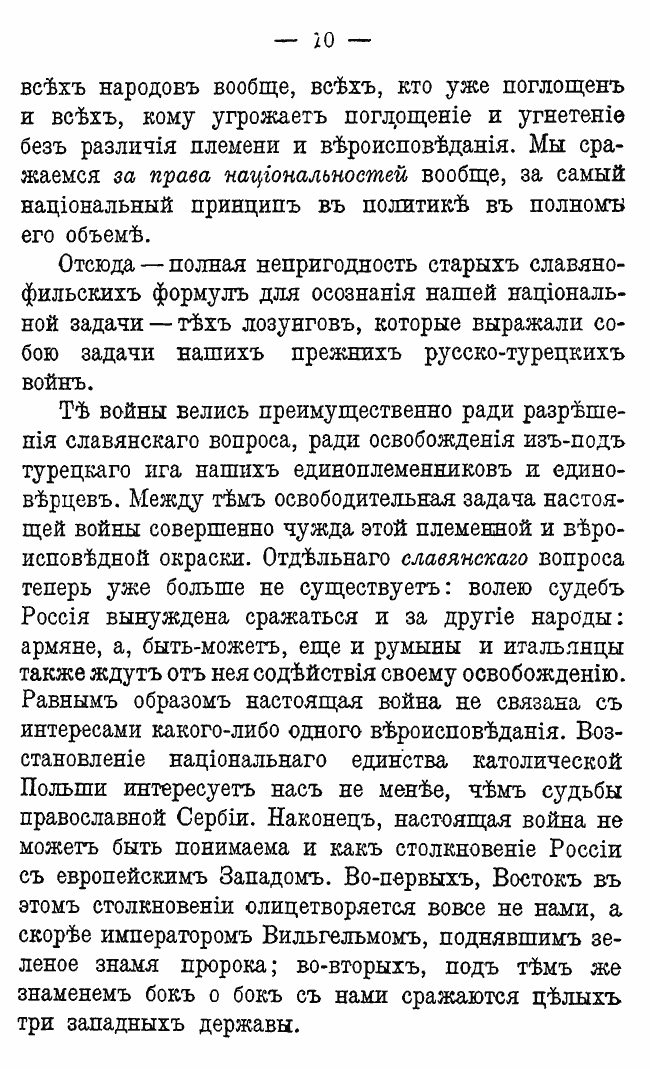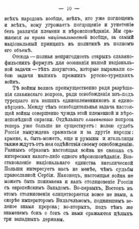 «Волею судеб России навязывается освободительная миссия; и в этой миссии она находит самое себя, свое лучшее национальное я... России нужно чувствовать, что она служит не себе только, а всему человечеству, всему миру».