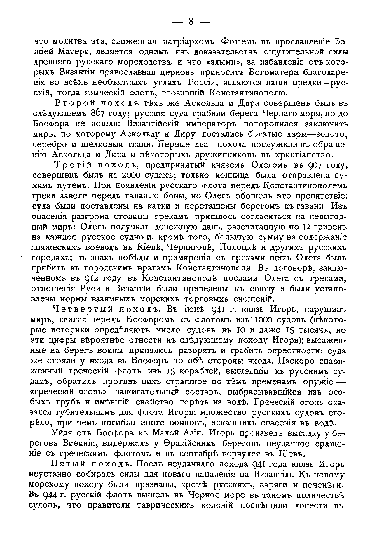 «История» рисует картину постепенного развития русского военного дела. С особым вниманием издание останавливается на наиболее выдающихся боевых эпизодах, интересуясь в тоже время организацией, бытом, вооружением и боевой подготовкой наших войск, в связи с политической жизнью государства. «История русской армии и флота» по своим размерам ( до 170 печатных листов) значительно превосходит прежние издания этого рода. Снабженная большим количеством иллюстраций и фотографий, она предназначалась для просвещения и русского офицерства, и русского общества.