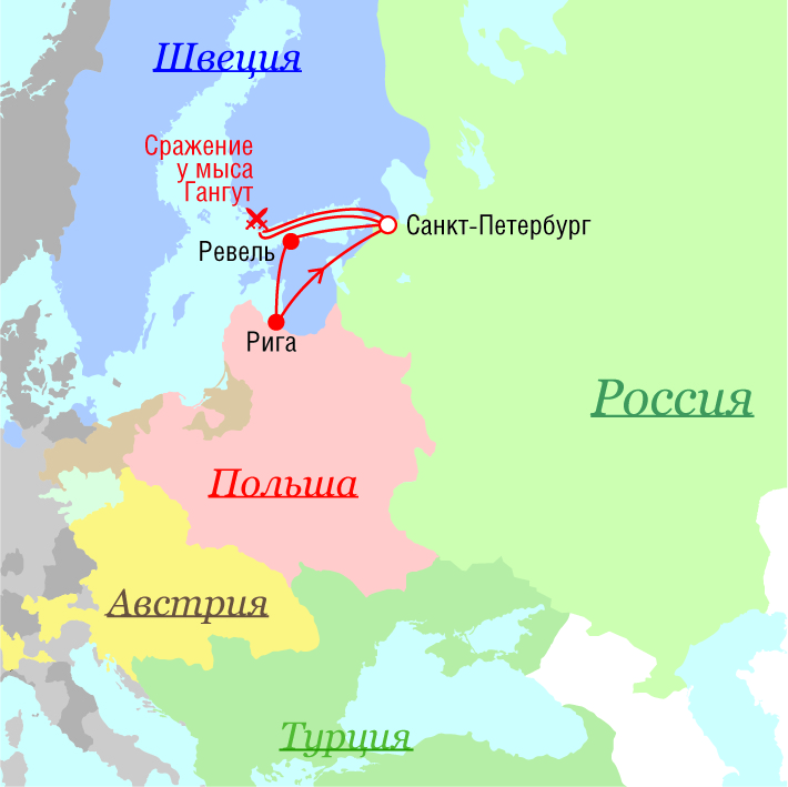 На карте указаны маршруты путешествий Петра I на каждый год. Расстояния приблизительно вычислены по российским дорожникам XVIII и XIX вв. Различия в длине маршрутов Петра и современного пути объясняются другой сеткой дорог. Длина маршрутов, на которые данные дорожников отсутствуют, была определена по электронным картам.