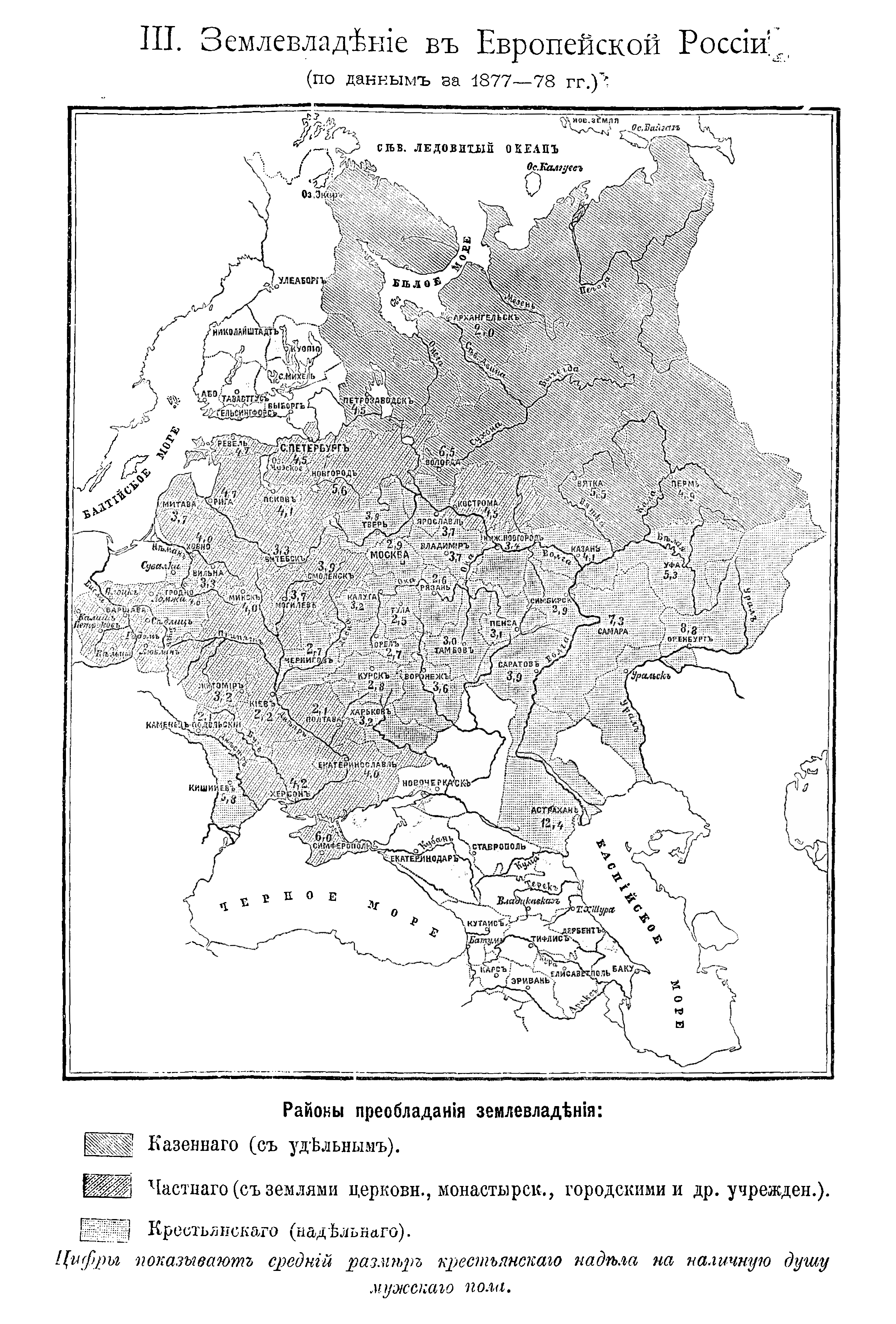 Землевладение в Европейской России (по данным за 1877-1878 годы)