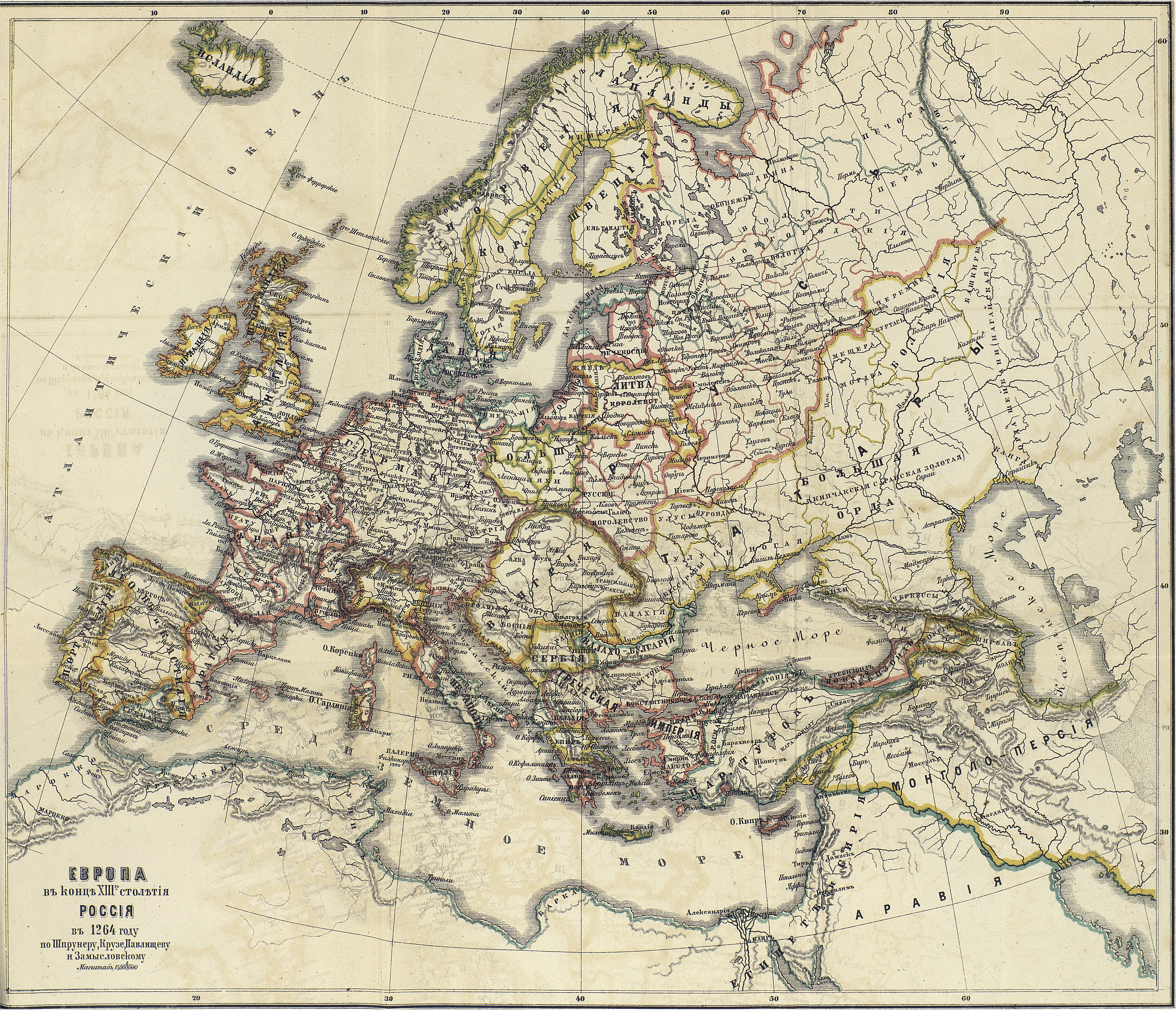 Карта Европы в конце XIII столетия. Россия в 1264 году по Шпрунеру, Крузе, Павлищеву и Замысловскому